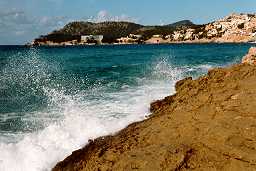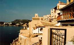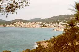 Wir setzen uns zwischen den Badegästen auf eine Mauer. Wunderbar ist die türkisblaue Farbe des Meeres, das Wasser ist glasklar. Über der Bucht sieht man links das dicht bebaute Santa Ponsa, rechts ist die Bucht durch das Kap Andritxoll begrenzt, wo noch keine Bebauung existiert. So in der Sonne dösend vollzieht sich unser Einstand auf Mallorca gar nicht so unangenehm.