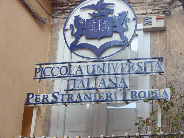 Unser Massimo bietet ein Führung in Tropea an, die sei aber freiwillig. Natürlich lässt man sich das nicht entgehen. Nun liegt die Hauptattraktion dieser Stadt bereits direkt vor unseren Augen. Das ist die Kirche Santa Maria dell'Isola, die sogar das Titelbild des Dumont Reiseführers ziert. Zur Zeit ist die ganze Geschichte aber nicht zugänglich, weil einige Höhlen im brüchigen Untergrund die Standfestigkeit bedrohen. Da muss wohl erst einiges armiert, saniert und betoniert werden. Nun werden wir auf eine andere - auch baulich bedingte - Eigenart hingewiesen. Die Hausfassaden haben zuweilen eigenartige rechteckige Löcher in regelmässigen Abständen. Die dienen dazu, Gerüste anzubringen, falls Restaurationsarbeiten notwendig werden. Man schiebt dann Balken in die Löcher und legt einfach Bretter darüber.
