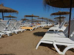 Touristenmanier mit Badetüchern vorbelegt. Allerdings ist es viel