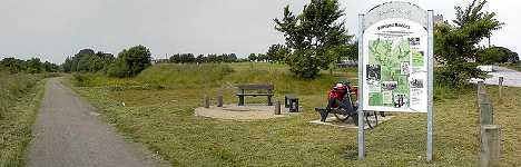 Eine schöne Aussicht hat man dann auf die Bucht bei Alnmouth, jetzt bin ich auf der A1068 unterwegs, auch wieder eine etwas waghalsige Sache. Bis jetzt habe ich für heute dank Rückenwind einen sagenhaften Schnitt. Darauf sollte es ja eigentlich nicht ankommen, aber ab und zu braucht man das mal. Schaffe ich heute 100 Meilen? Zur Beruhigung: ab dem Ort Amble geht es verkehrsfrei immer an der Küste entlang durch den Druridge Bay Country Park, Dünen und eingesprenkelte Binnengewässer. Eine Abzweigung verpasse ich dennoch und lande über eine "Private Road" hinter den Scheunen einer Farm, finde aber wieder zurück auf die Radroute.