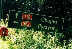 We cannot stop to discuss about the money affair. Heidi suggests to return and to complain the matter at the exchange office. "They will not remember us" I say. We decide to test it at the next "Sklep" as they call the small general shops in the villages. We turn to go east and let the Oder behind. And now the first sign to Pyrzyce comes up for a photo. My mother and grandmother did never see such a sign in their life again since they had to leave their home town. This is the sentimental part.