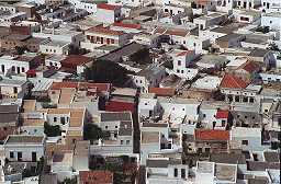 Now at the early afternoon there are not so many old men at the scene. May be they have succeeden do decide about the fate of the world or the Ouzo did its work. Some steps from the main road we find a labyrinth of small lanes within bright white painted houses. This looks much more original than Lindos for it is not as affected by touristic criteria. A black woman salutates kindly. Some steps ahead a poor old woman sits at the ground and eats a rice meal with bare hands. We resign to shoot a foto again.